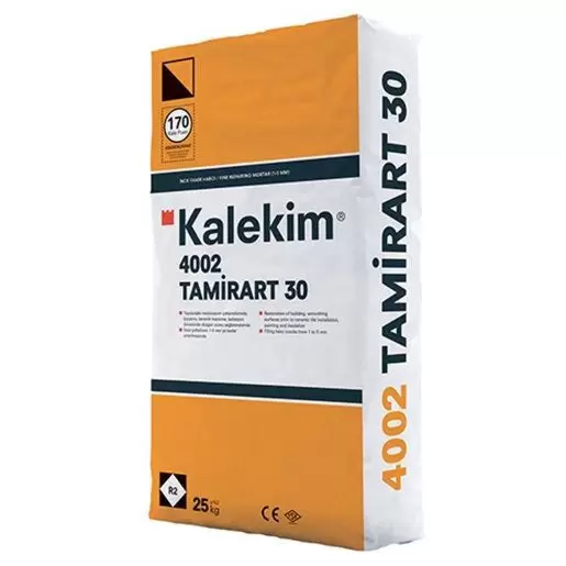 Tamirart 30 4002 - усиленный полимером раствор для ремонта поверхностей на цементной основе. Обладает высокой прочностью сцепления, устойчив к циклу замораживания и размораживания. Создает гладкую и прочную поверхность.